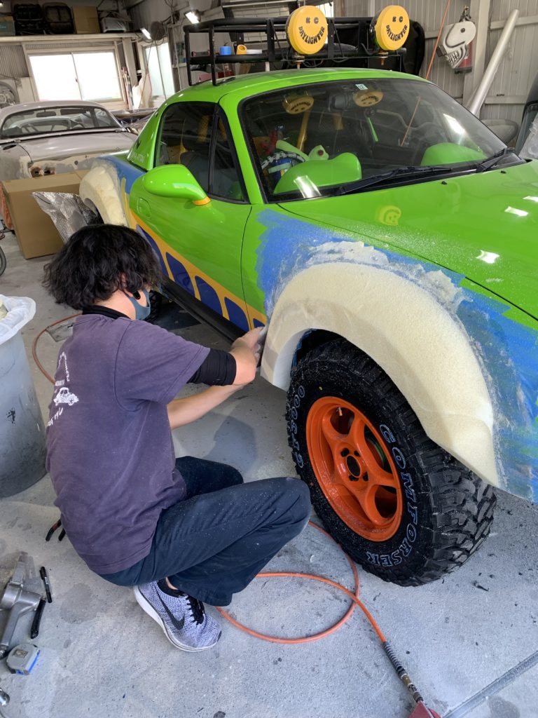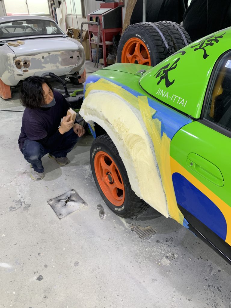 更なる進化をすべく、オリジナルオーバーフェンダーの製作・オリジナルサスペンションの設計・オリジナルフロントアンダーガードの作成が始まる。