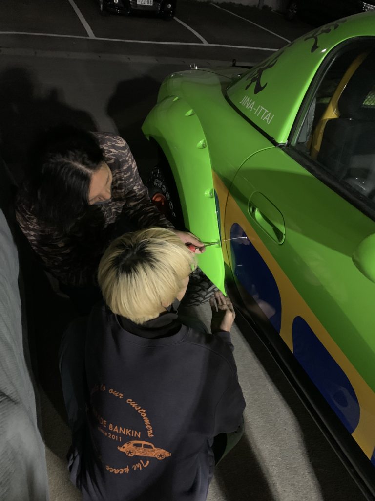 内容:前後バンパーカット・前後フェンダー加工・オーバーフェンダー塗装(ブラック)ショックアブソーバー取付・ロワーボールジョイント取付・4輪アライメント