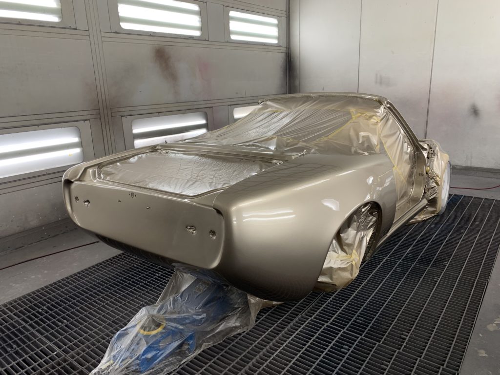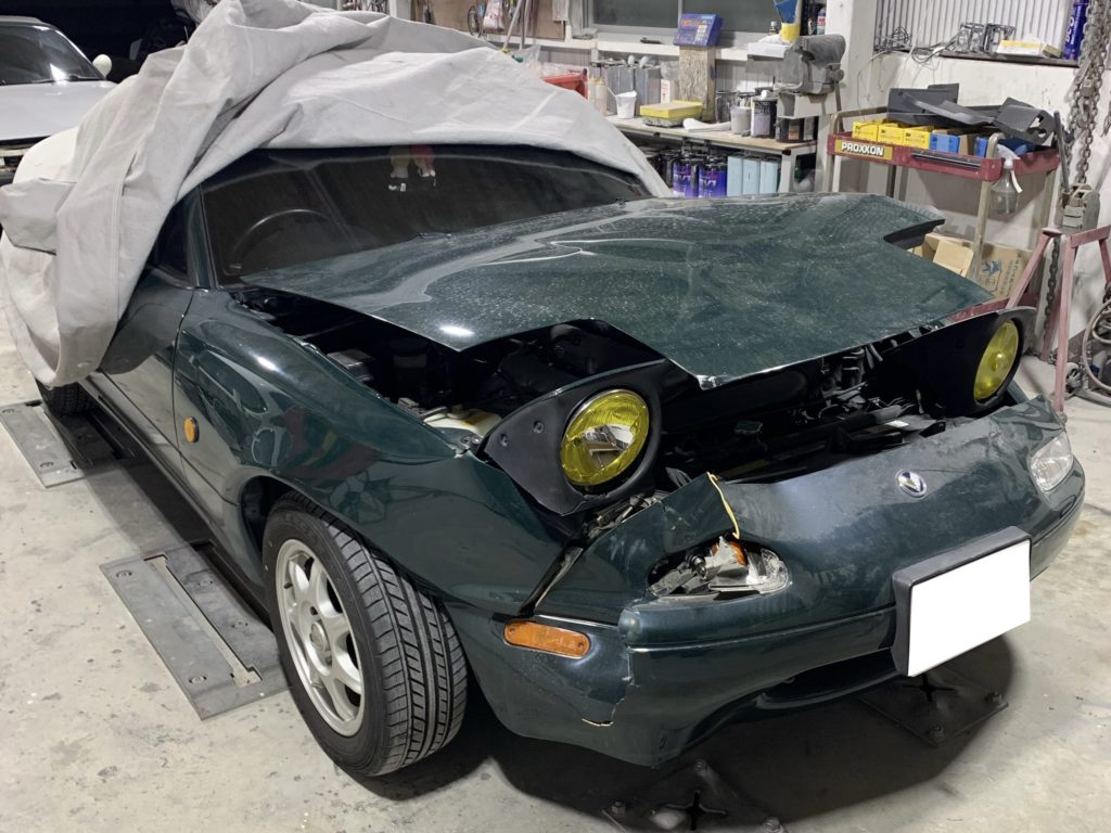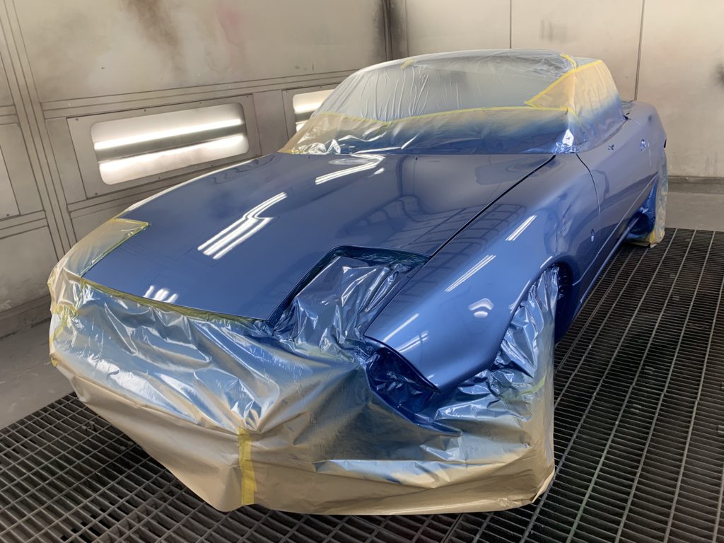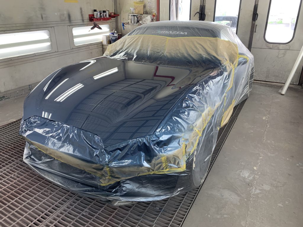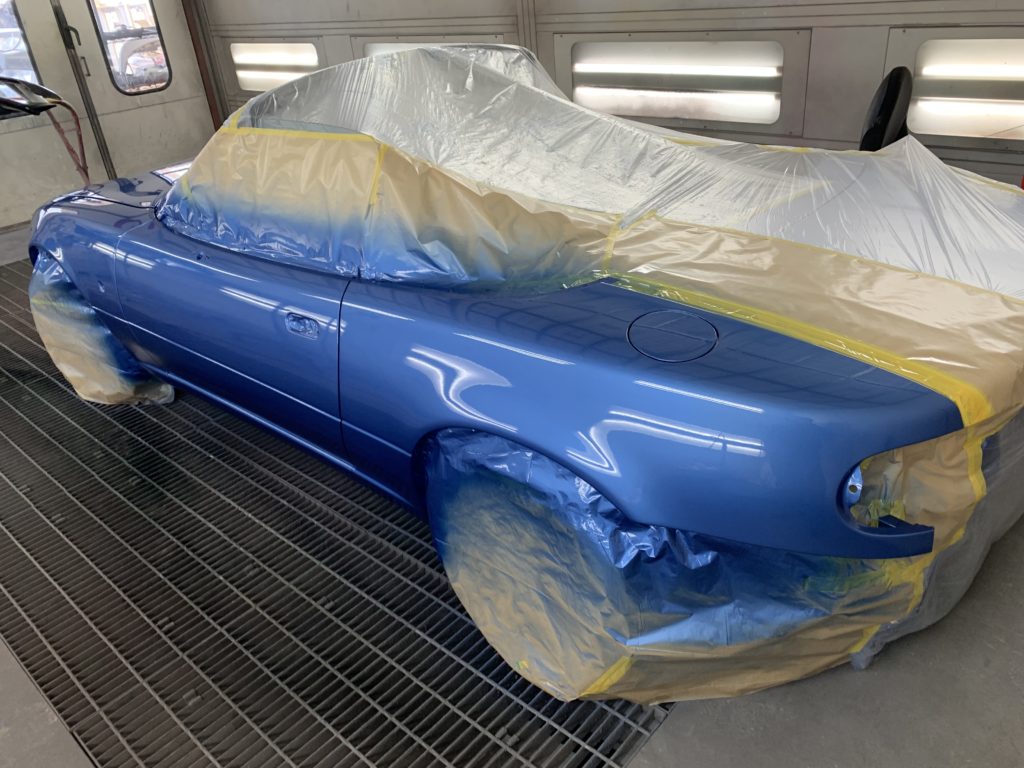当店に来ていただくと正面に目につく大きな扉。"ANDEX"社の塗装ブースです。(自動車補修用塗装・乾燥装置の国内トップシェアを誇るANDEXは広島にあるメーカーさんです)。
